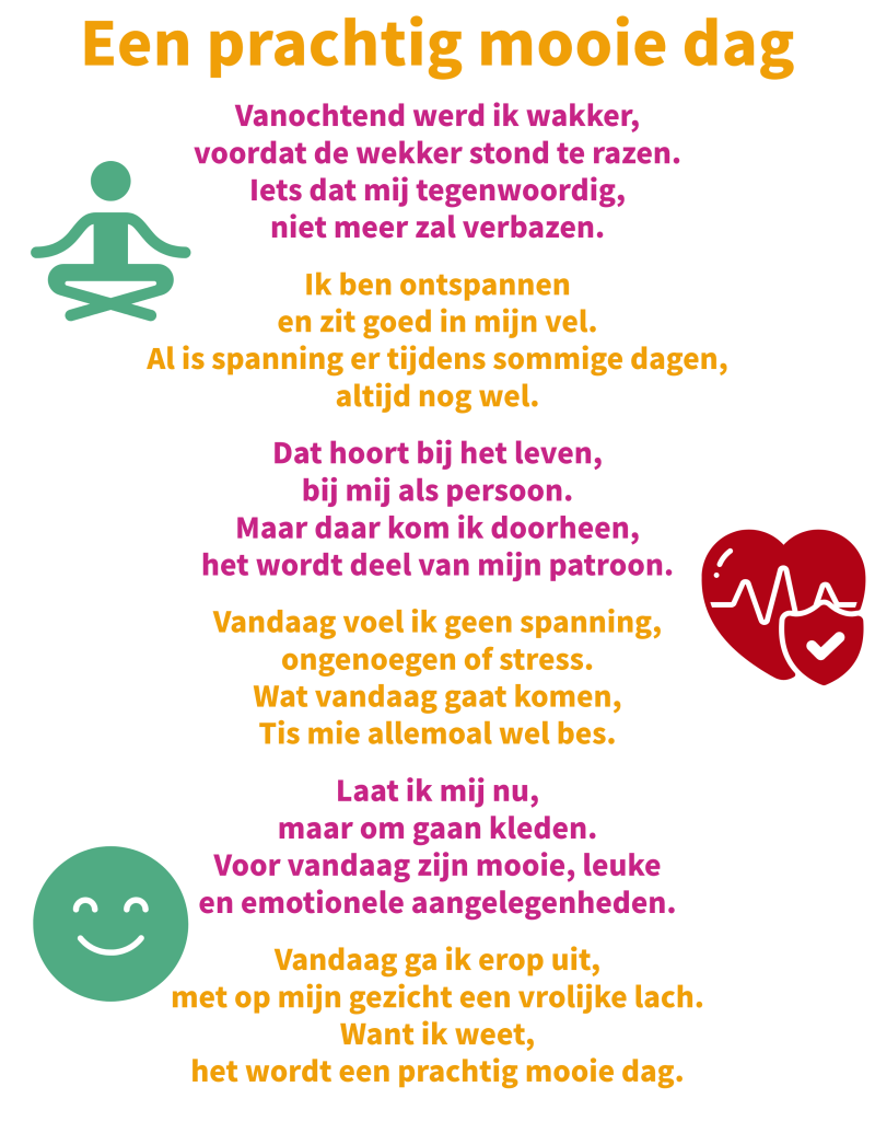 Vandaag wordt een dag zonder stress en spanning. Vandaag wordt gezellig en feestelijk. Vandaag wordt een prachtig mooie dag.