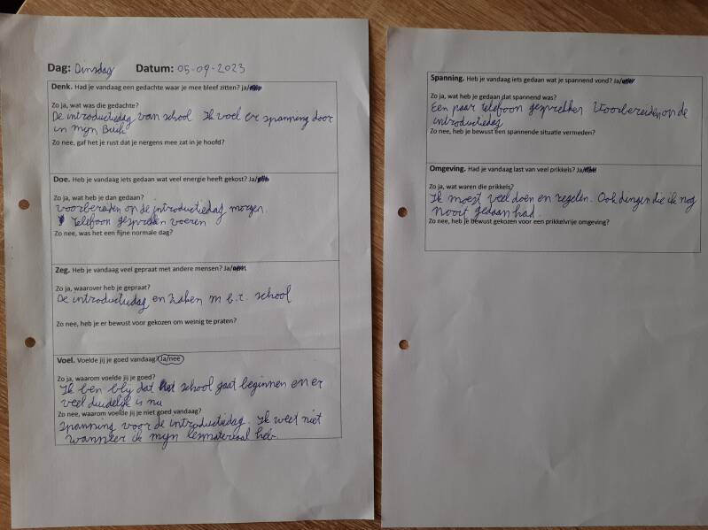Hier zie je een door mijzelf ingevuld formulier de dag voor ik aan school begon.