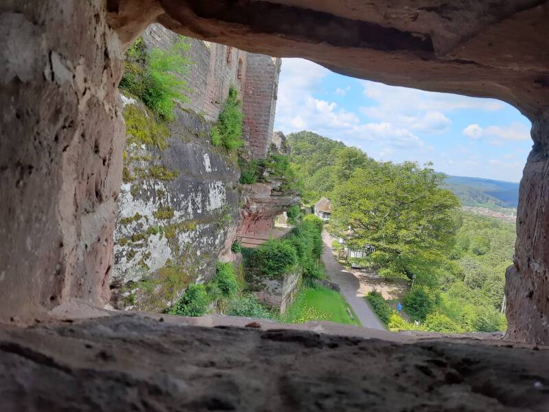 De ochtend begon weer zoals elke ochtend en het ontbijt was weer heerlijk. Toen we de buikjes vol hadden zijn we vertrokken richting Dahn. Mijn vader en ik zouden eerst alleen naar de Altdahn, Grafendahn en Tanstein gaan, maar dit plan werd toch anders. We konden vlakbij de 3 burchten parkeren. Een korte, maar flinke klim vanaf de parkeerplaats en je bent er al. Wederom hebben we onze ogen uitgekeken naar alle bouwsels bij, op en in zo’n burcht. Er waren drie torenwachter kamers. In één daarvan heb ik mijn vader gefilmd. In die kamer zeg ik “daar heb je em wel de grote torenwachter.” Ik zal het filmpje delen op Facebook dat kan namelijk niet op mijn website. Mijn vader en ik hadden de grootste lol.