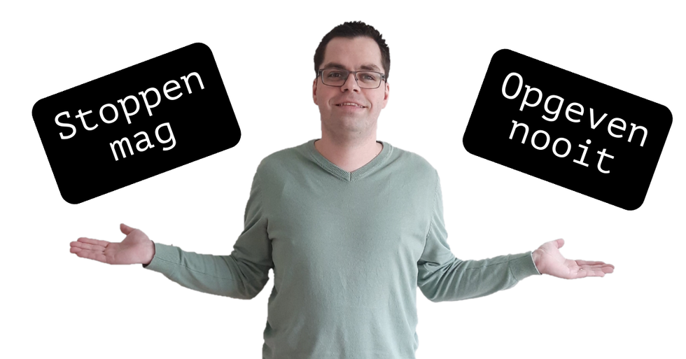 Om je hoogste pieken te bereiken moet je wel eerst door de diepste dalen. Gebruik daarbij alle tools die je worden aangereikt. Maak gebruik van de mensen om je heen en gebruik dat verstand van je om jezelf zo goed mogelijk te leren kennen, zodat jij je eigen tool van succes wordt. Kijk daarnaast niet meteen wat het direct met je doet, maar wat het juist later voor je doet. De nare dingen op de korte termijn mogen in mijn ogen nooit het succes op de lange termijn in de weg staan. Opgeven is de moeilijke weg, omdat je helemaal niet leert op deze weg. Je zal alleen blijven hangen in dat wat niet is gelukt. Terwijl het leven zoveel meer te bieden heeft. Stoppen mag, maar opgeven nooit.