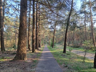 Maar zoals wel vaker dwaal ik weer eens af. Ik had het over de knooppuntenroute. Vanaf het park zijn we naar knooppunt 70 gefietst en vanaf daar zijn we knooppunten gaan volgen tot bij het Buitencentrum Sallandse Heuvelrug. Dit ligt links naast Nijverdal. In het centrum hebben we een knooppuntenkaart, souvenirs, een koekboek en een tas voor Natalie gekocht. Vervolgens heb ik door middel van die kaart de rest van de route uitgestippeld. Deze route ging om en door de Sallandse heuvelrug heen. Uiteindelijk hebben we 38 km gefietst.