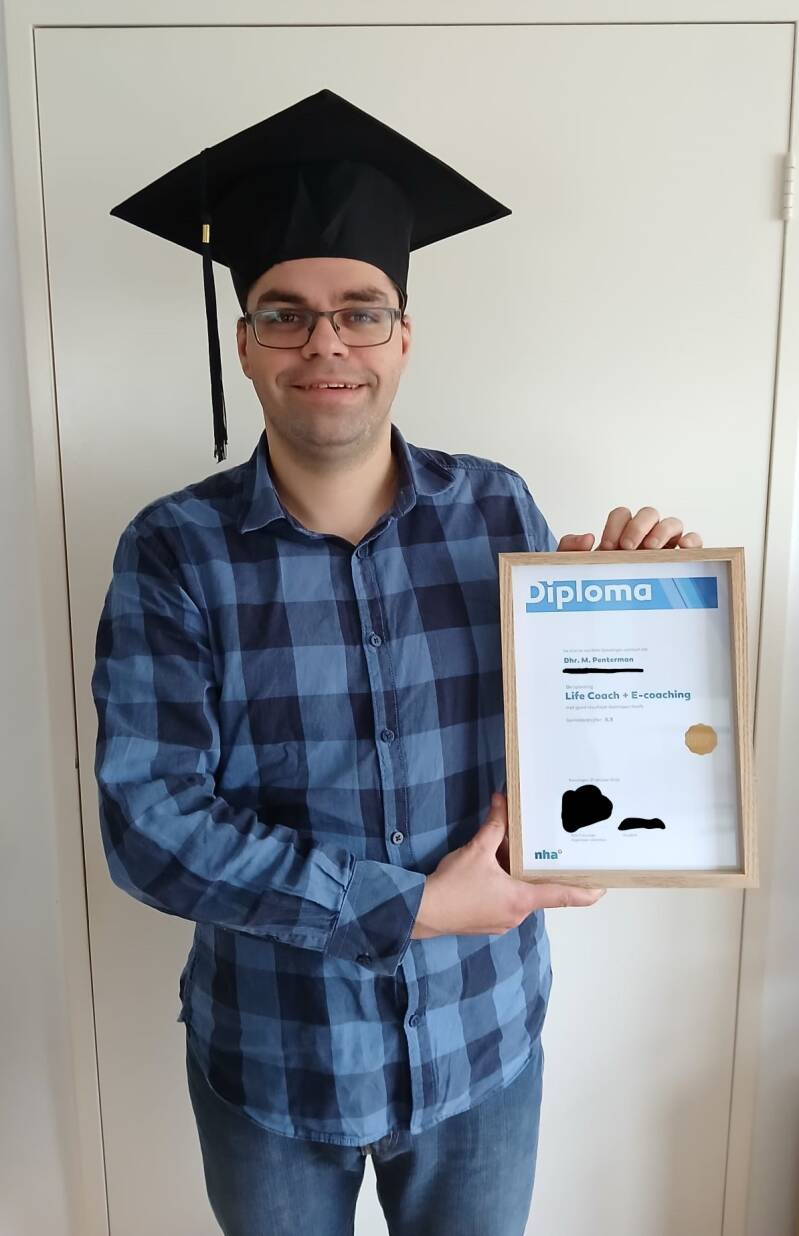 Uiteindelijk waren er nog wat meer haken en ogen dan het vervoer, maar ook die zijn voor een groot deel al weggewerkt. Zo gaat dat nou eenmaal. Het gaat nooit precies zoals je gepland hebt. Ik kan dan nogmaals met trots zeggen dat de eerste bijeenkomst van 10 oktober zeer vermoeiend was, maar dat ik hem al met al goed ben doorgekomen. School check en een deel van de praktijk is ook check. Nu het andere deel nog, maar dat komt eraan. Deze opleiding is hopelijk mijn volgende stapje omhoog. Ik zal er alles aan doen om mij de beste kans te geven. Na de Autismebegeleider opleiding zie ik wel hoe ik verder kan en wil gaan. Voor nu mag ik van mijzelf vieren dat ik geslaagd ben en mijzelf Life coach en E-coach mag noemen.